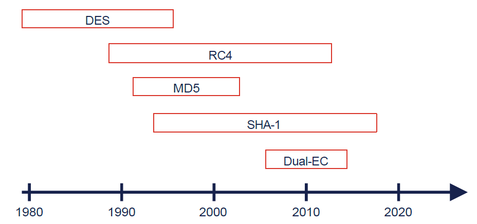 This principle is called crypto agility. A system is crypto agile if it allows the seamless exchange of existing cryptography without the need to modify the underlying infrastructure. This means that a company employing crypto agility as a design principle can replace a compromised cryptographic algorithm with a secure variant within a few days, instead of having to undergo a large-scale transition that takes months to plan.