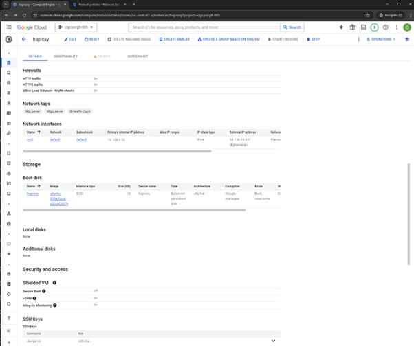 La VM GCP avec le service HAproxy est également installée et fonctionne :